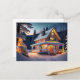 Christmas postcard featuring a beautifully decorated holiday home in the snowy mountains.