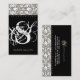 Stylish trendy monogram business card with pretty retro damask accent great for a nail / tanning / hair salon or spa, massage therapy or the beauty industry or any cosmetologist / cosmetology or a florist or interior designer.