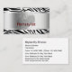 Modern beauty hairstylist business cards with simulated silver metallic background, a zebra stripes pattern, and great text layout you can customise on two sides. Easy template style design you can alter to your liking. Best business cards for beauty salons, hairdressers, hairstylists, or independent hair cutter.