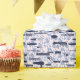 This design features assorted beauty care tools on a background of blue roses.