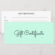 Beauty Mint Green Business Gift Certificate