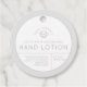 Hand lotion, bath and body creams container or pot swing labels. Ideal for homemade and small beauty businesses, body lotions, creams, scrubs, liquid soaps and butters. Personalise with your name and ingredients list, and amount, other product details and own logo and address, contact details and barcode on reverse. Give a professional touch to your good for sale at markets and online or in health and beauty shops. Simple graphic line art in simple mono toned grey and white. Background colour can be changed if required. Other colours and designs available and requests are undertaken. Art and design by Sarah Trett for www.mylittleeden.com on zazzle.