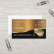 Beauty business cards with cool hairstyle graphic that looks like metallic gold and has a floral flourish on the front and text space you can personalise to work for your service. Designed as a business card template for a hairstylist, hair salon, or beauty consultant.