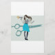 Show your fun and flirty hairstylist side with this modern and elegant hair stylist. Pretty hair stylist with long hair blowing in the air, clothed in charm and elegance, holding hair brush and hair dryer. Super chic and glamourous professional hair stylist.