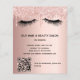 A rose gold gradient background, with glitter drips and eye lashes. On front: The text: Price list. Personalise and add your name and address. Create your own QR code by adding your url to your website or to your social media account.