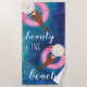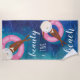 Super cute and fun ocean beach themed beach towel perfect for ocean & beach lovers. Design features our hand-drawn deep blue and turquoise water ripple and water waves artwork with our hand-drawn African American woman floating on a pink pool float. "Beauty and the beach" is designed in a stylish script and hand-lettering text pairing. Personalize the lady's beach hats with your name. Artwork by Moodthology Papery.
