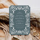 Elegant vintage wedding invitations in rich forest green feature ornate detailing that evokes the look of cut paper in a papel picado style. Select the Ticket shape to complement the unique shape of the deco-style details.