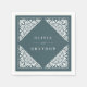 Designed to match our Beaux Arts wedding collection in Spruce, these elegant art deco cocktail napkins feature your names on a forest green background adorned with lacy white papel picado cutout style embellishments at the corners.