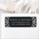 Art deco style return address labels feature your return address in white lettering on an inky off-black background, adorned with lacy white papel picado-style detailing at the corners. Designed to match our Beaux Arts event stationery collection in Charcoal.