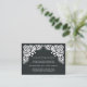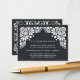 Designed to coordinate with our Beaux Arts wedding collection in Charcoal, cards feature white lettering on an inky off-black background accented with lacy white cutout style detailing at the corners.