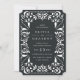 Elegant vintage wedding invitations in rich, inky off-black feature ornate detailing that evokes the look of cut paper in a papel picado style. Select the Ticket shape to complement the unique shape of the deco-style details.