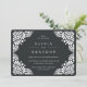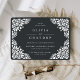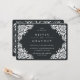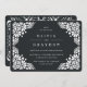 Elegant vintage wedding invitations in rich, inky off-black feature an ornately detailed deco border that evokes the look of cut paper in a papel picado style.
