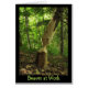 This note card captures a tree trunk that has been almost completely gnawed through by beavers. The tree is on a rather steep creek bank and chewed at the perfect angle to roll down into the water. What incredible animals they are! Mainly nocturnal, these large, semi-aquatic rodents are famous for building dams, canals, and lodges (homes). They are the second-largest rodent in the world. Their colonies create one or more dams to provide still, deep water to float food and building material. The water also acts as a protection against predators. The text reads: Beaver at Work. It can be customised or deleted.