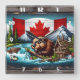 Beaver Building Dam Near Canadian Flag Square Wall Clock