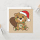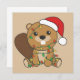 The beaver at Christmas with fairy lights. Funny animals with gifts and snow for the holidays. A sweet Christmas greeting. Beavers are cute animals and perfect for Christmas.