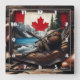 Beaver in Canadian Wilderness With Flag Background Square Wall Clock