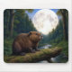 A beaver resting on a sturdy log above a gently flowing stream, bathed in the enchanting glow of the full moon