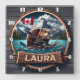 Beaver on a Wooded Lake With Canadian Flag Square Wall Clock