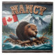 Beaver on Raft With Flag in Scenic View Tile