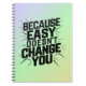 Because Easy Does not Change You Motivation Saying Notebook