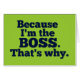 Because I'm the boss. That's why. Just in case they needed to be reminded who's in charge.