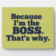 Because I'm the boss. That's why. Just in case they needed to be reminded who's in charge.