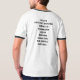 The product was as advertised. The message is succinct and is an eye-catcher. This shirt gets a heap of feedback from onlookers. Most ask you to stand still while they finish reading the definition. They then either give you the thumbs-up or nod any walk away. Either way, its a real conversation starter and so far, no one has disagreed enough with the print to verbalize. The material is fairly light, but the print is stable enough to withstand washes and some activity. A fair deal. Readable and durable.
