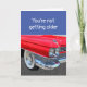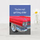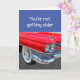 Humourous card for someone who may be getting a bit "over the hill." The design features a photo of the partial front of a classic car placed on a changeable background colour. The inside text that carries the fun message is easily changed by using the template. Add a signature if you wish or simply remove it with the template. For any other desired text changes (different type font, colour, size or placement) select "Personalise this template" then select "Edit using Design Editor." The photo is also editable (resized or rearranged) with the Design Editor. The background colour above and below the image can also be changed by using the Design Tool. Select "Background" on the left, then choose a colour. Keep selecting a colour until you find one to your liking. If the text disappears (and it might), simply click on "Backward" once or twice (while still on "background" until the text reappears). The "Designer's logo" on the back is also part of the template and, thus, can be easily removed if not wanted. Other size cards available -- see options.