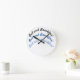 The clock did not take as long to arrive as I thought it might and was extremely well packaged. I didn't do the measurements so I didn't realize it is a little smaller than the average clock but that does not matter (just make sure you check if that's important to you).It is really nifty! It seems very solid and well made not flimsy at all. It has been going well and has kept good time in its few weeks on my wall. Nice product. Gets noticed too! Nicer in real life than the picture but true to the picture