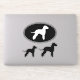 Oval and die cut sticker set. These durable dog silhouette decals are waterproof and scratch resistant. Stick these Bedlington Terrier stickers to your laptop, phone, notebook, water bottle, helmet, luggage, or even your car. Visit Jenn’s Doodle World for even more dog breed vinyl decals and Bedlington Terrier lover’s gifts.