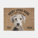 This welcome mat can be personalised with your dog’s name, the slogan can also be changed or you could use a picture of your own dog (make sure it's transparent). Text reads: Daisy Lives Here…. All treats welcome.