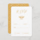 Single bee in gold on a white background with a brush stroke honeycomb pattern on the reverse. Personalise with your own details. Available in a variety of products.