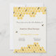 A birthday invitation with a pattern of a bee on honeycombs on top and bottom and customisable grey, yellow and brown texts: perfect to organise a birthday party for a friend or a member of your family!