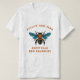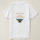 Bee business name and location t-shirt. White shirt with option to add your logo in place of the bee image. Both sides of this shirt have the bee (where your logo will appear). Rust orange printed text on front is curved over the bee for business name. Text under the logo / bee can be location. On the back, add more information, such as products, services, etc. Colours are blue, black and orange and looks best on light colours.