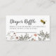 Whimsical baby shower diaper raffle ticket featuring watercolor illustration of wildflowers with a bumblebee. The card asks guests to bring a pack of diapers for a chance to win a special prize.