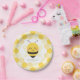 Buzz-worthy bee paper plates with honeycomb design for your bee themed baby shower. Personalise with your Mama-to-bee's name and baby shower date.