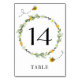 Bee-themed Table number card featuring watercolor wreath with greenery and daisies along with buzzing bees. Table number card prints on front and back (double-sided). Items are printed exactly as they appear on your screen when you add to cart, so personalise and add each table number that you need to your cart individually.