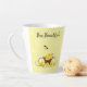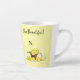 This small latte mug features a design made up of a basket of lemons with a little bee, over a yellow background. On the front and back of the mug are the words "Bee Beautiful!"