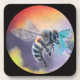 A colourful set of six cork backed coasters featuring a bee hovering near a flower. Design taken from an original pastel painting