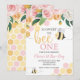 So Sweet to Bee One! Flora and pink bee-day first birthday invitation.