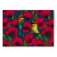 Bee-eaters and poppies drawn and coloured in Illustrator, seamless pattern.