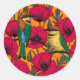 Bee eaters and poppies on orange classic round sticker