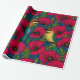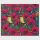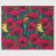 Bee-eaters and poppies drawn and coloured in Illustrator, seamless pattern.