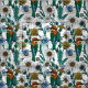 Bee-eaters, blue butterflies and daisies on white fabric