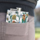 Bee-eaters, blue butterflies and daisies on white hip flask