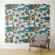 Bee-eaters, blue butterflies and daisies on white tapestry