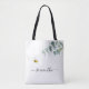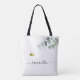 A chic white background.  Decorated with watercolored eucalyptus greenery, foliage and a cute, happy smiling bee.  Personalise and add your name.  The name is written with a modern hand lettered style script with swashes.  The name in black.