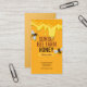 Beekeeper honeycomb business card featuring honey dripping from the comb and a pair of bees flying over a dark tangerine orange background. Use custom lettering for your brand name - using up to five lines of text including blank lines to push words to the top. Add the name of the beekeeper or professional apiary and contact information, with optional company description or product list on the back.