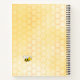 Yellow, white background with a honeycomb pattern. Decorated with sweet, golden dripping honey and happy bumble bees. Templates for your name and monogram letter. Perfect for keeping your notes working from home, your summer recipes or garden, backyard notes.