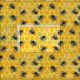 Bee hive. Yellow honey bumblebee insect. Honeycomb Fabric